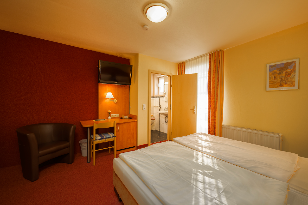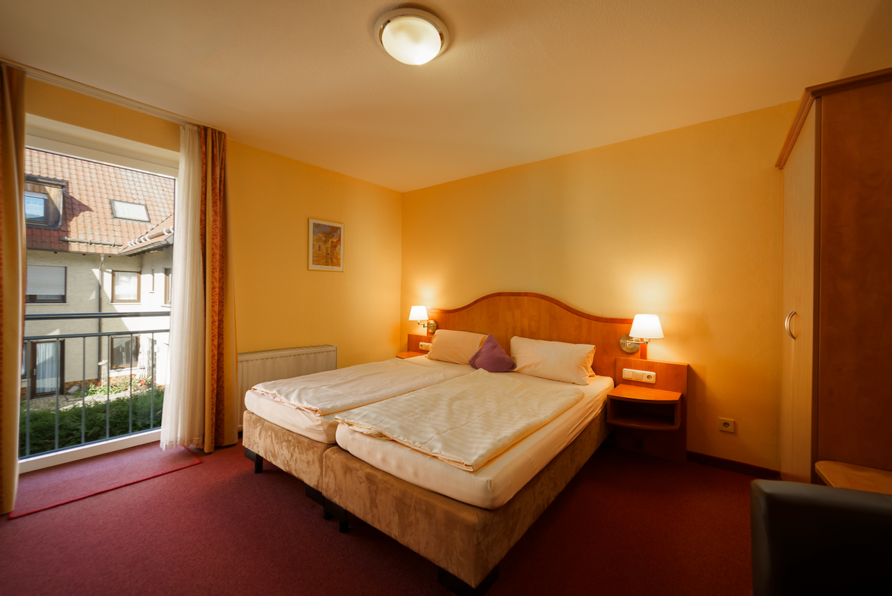 Mit über 75 Betten im Haupt-, 12 Betten im Nebenhaus und rund 200 Sitzplätzen in drei Speisesälen sind wir bestens geeignet, Reisegruppen, Vereine und Clubs bewirten und beherbergen zu können. Alle Zimmer sind geschmackvoll eingerichtet und verfügen über Du-WC/Sat-TV/kostenlosem WLAN und Föhn sowie teilweise Balkon oder Terrasse. Darüber hinaus bieten wir zwei rollstuhlfreundliche Gästezimmer an. Bademäntel können gegen geringer Gebühr gemietet werden. Wir bieten Ihnen Doppelzimmer, Dreibettzimmer, Einzelzimmer an.