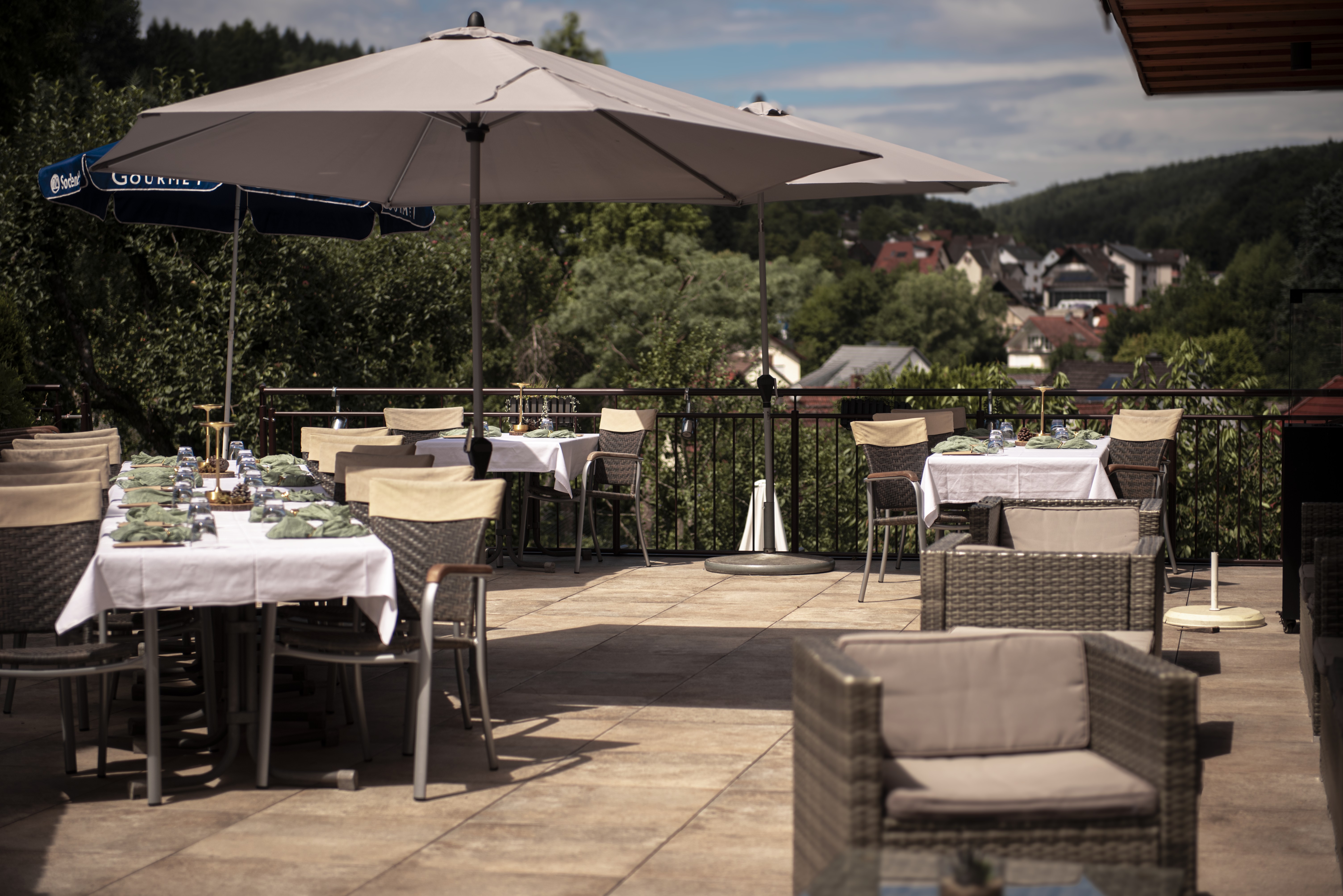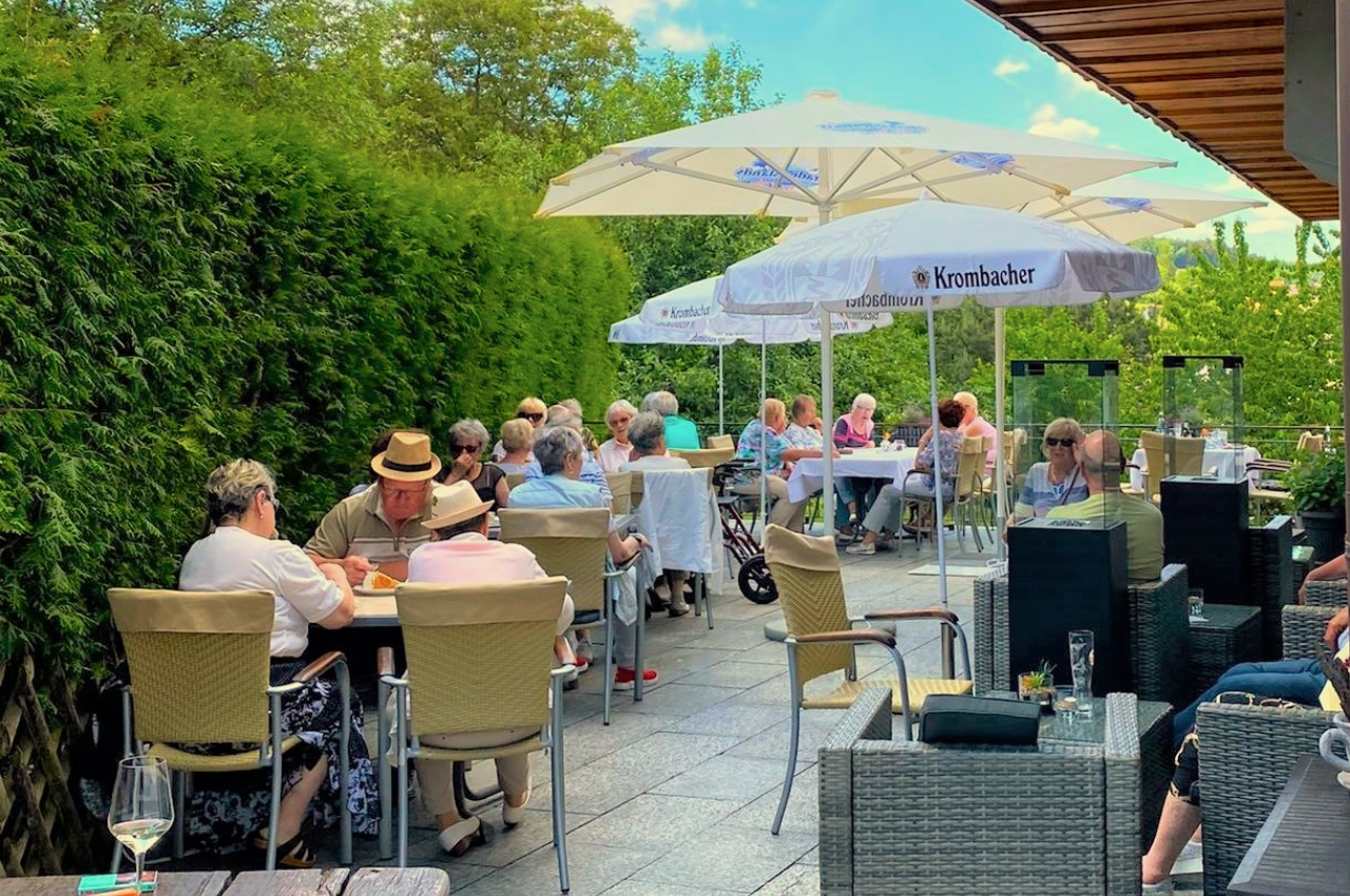Auf der herrlichen Sonnenterrasse können sie bei Kaffee & Kuchen einen atemberaubenden Blick auf die